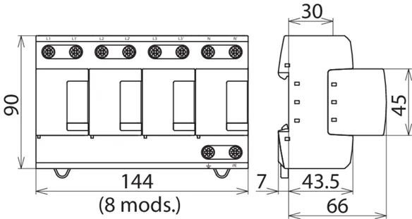 | Lightning impulse current (10/350 µs) [L+N-PE] (Itotal ) | 50 kA |