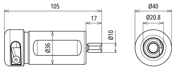 | Diameter Ø conductor | 20 mm (remove the grey sheath beforehand if necessary) |