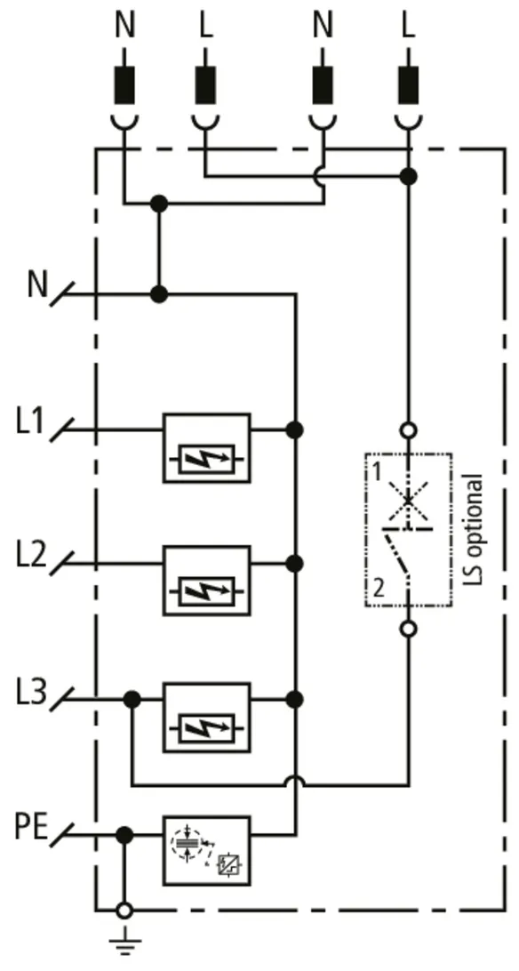 | Lightning impulse current (10/350 µs) [N-PE] (Iimp ) | 30 kA |