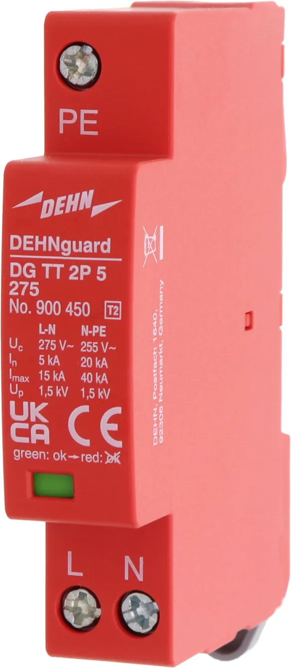 | Max. discharge current (8/20 µs) [N-PE] (Imax ) | 40 kA |