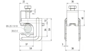 | Clamping range Rd / Fl | (+) 6-20 / 30 x 3-4 mm |