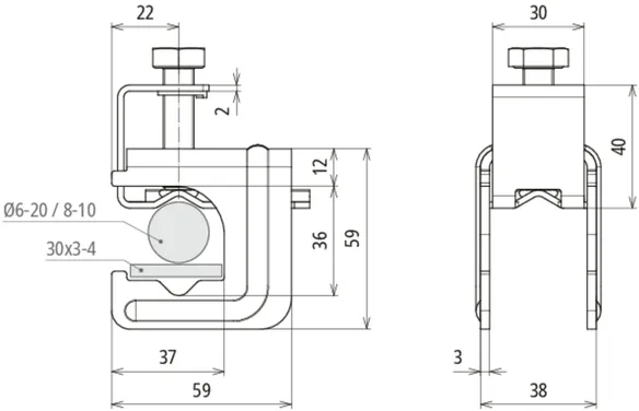 | Clamping range Rd / Fl | (+/II) 6-20 / 30 x 3-4 mm |