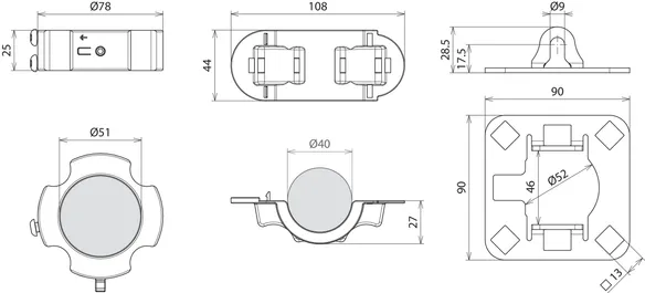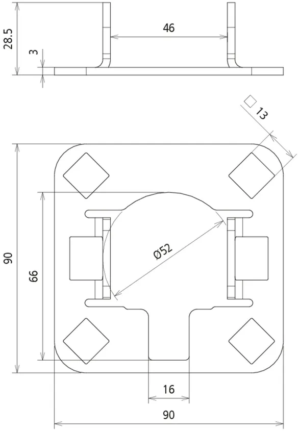 | Connection plate support | Square hole, 13 mm |